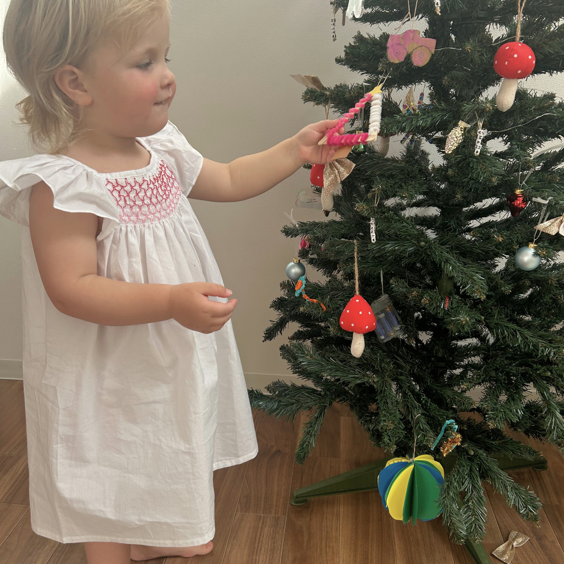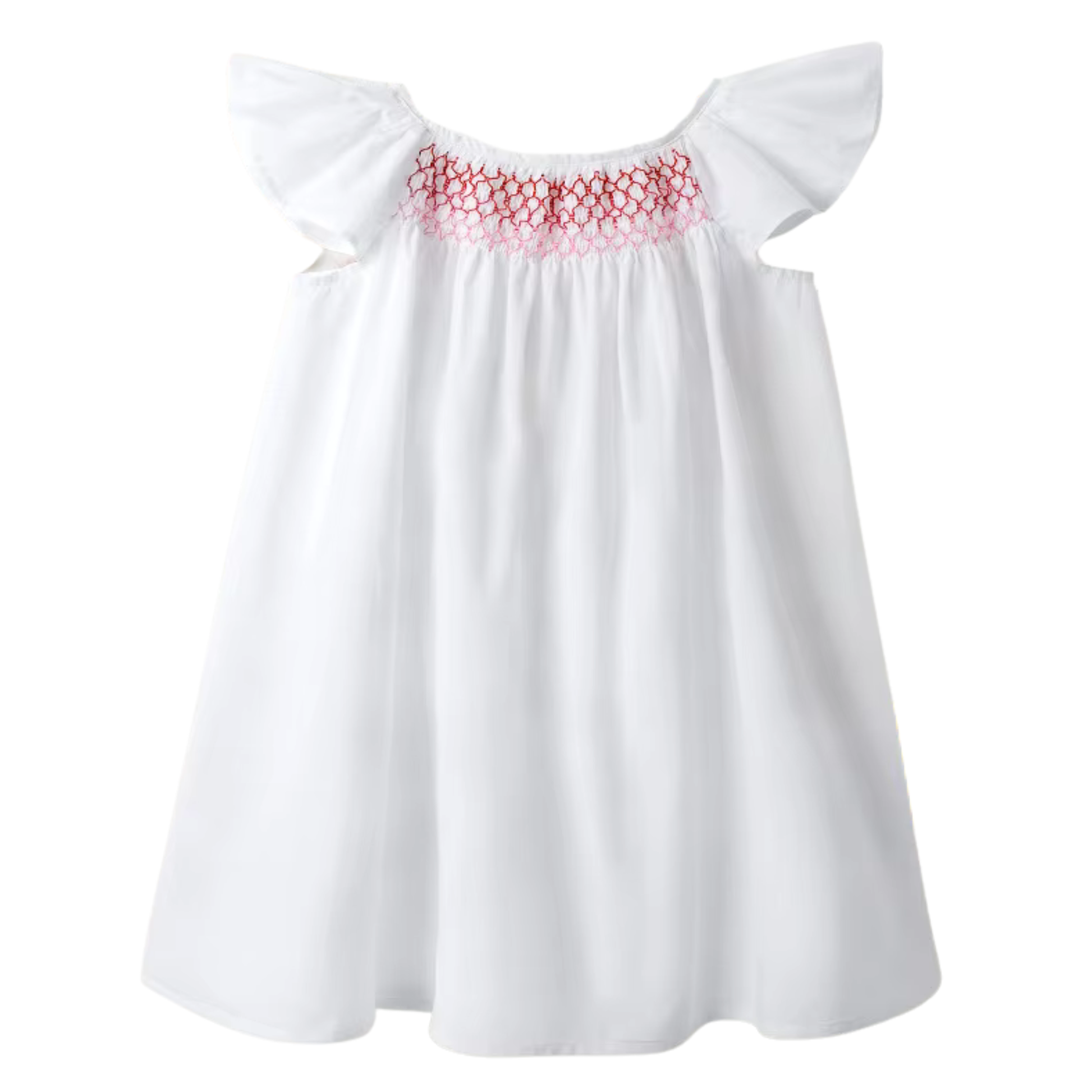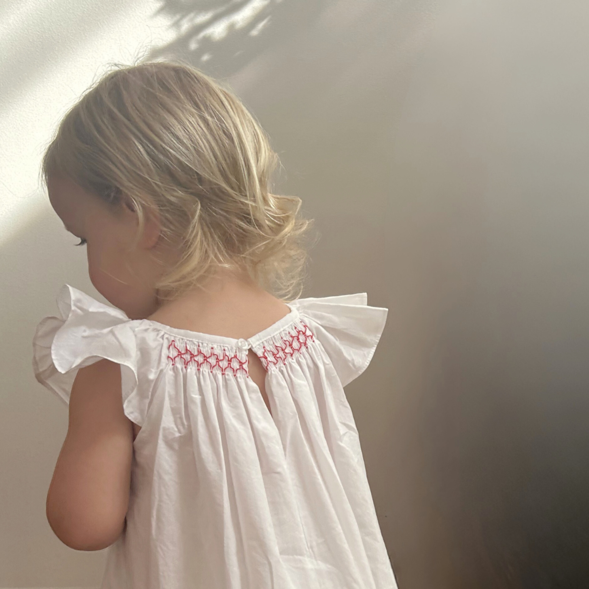 Designed with both style and comfort in mind, the Bon Bon Nightie features a charming smocked neckline in a Piccolo-favourite colour-combo of pink and red, with delicate frill shoulder details.